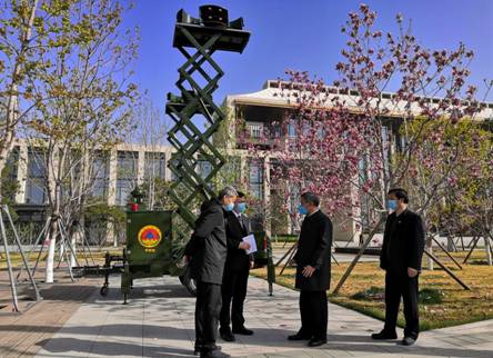 河南省人防办党组书记、主任贾宏伟在机动指挥车上检查指导鸣放工作