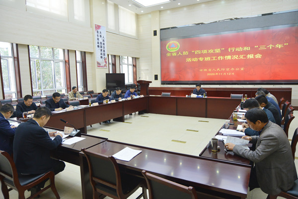 11月12日,省人防办召开“四项攻坚”行动和“三个年”活动专班工作情况汇报会,省人防办党组书记、主任倪玉平认真听取并点评各专班工作情况,对全年目标任务实现提出要求。